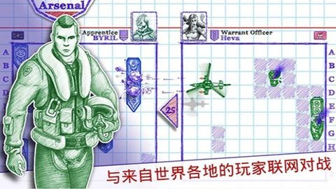 4、海战棋2采用方格记事本作为游戏背景,同时使用圆珠笔风格进行美术创作,让游戏具有独特的视觉风格,让玩家感受到最原始的游戏乐趣。