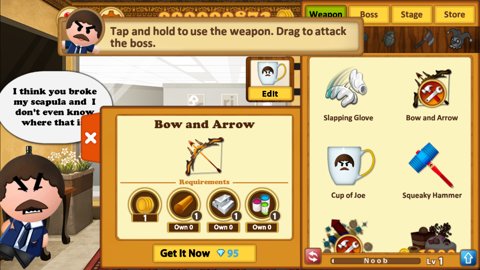 1、除了80多种新武器外,暴打老板3还有100多种全新致命武器,这些武器让玩家可以轻松地打败老板,让老板屁滚尿流。