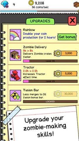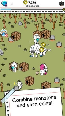 2、游戏操作简单,主要通过点击来收集金币,然后用这些金币购买新的僵尸种类并进行合成,促使它们不断进化。