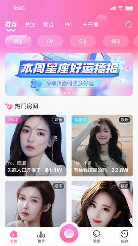 2、用户可以在这里展示歌技、舞技,进行一对一或一对多的互动,还可以参与悄悄话、好声音、搞笑脱口秀等节目,甚至在线PK社区。