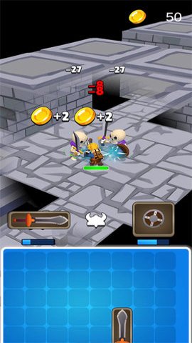 4、玩家需要控制一个勇士勇闯地牢,探索各种未知的区域,并合成武器来对抗怪物。