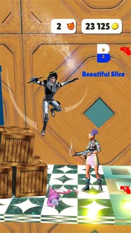 1、随着等级的提升,对手也会变得更加强大,玩家需要偏转他们的攻击,用剑切割所有移动的东西。
