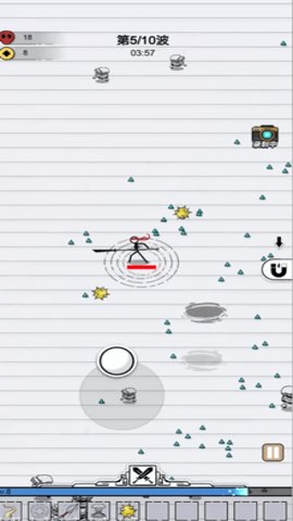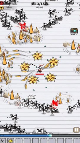 1、玩家需要通过升级、搭配技能、强化属性以及灵活的走位躲避操作来抵御敌群侵入,以获得通关的最强阵容搭配。