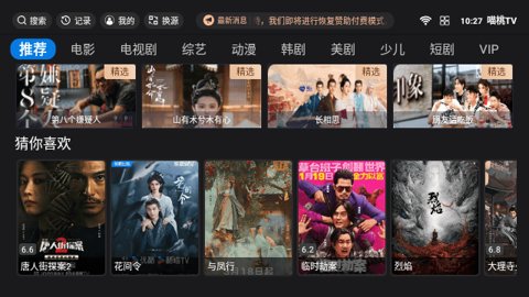 4、喵桃视频TV版是一款专为大屏幕播放设计的电视应用,提供了优秀的免费追剧平台,涵盖了经典影视剧、电影、动漫等资源。