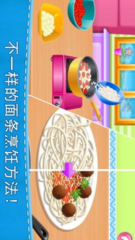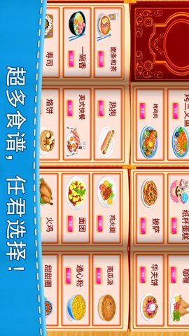 1、游戏的特点包括选择9种不同的菜品进行制作,比如制作炸薯条和汉堡包、烘烤和装饰甜甜圈、自制汤、烘烤和装饰生日蛋糕、烤制自制比萨等。