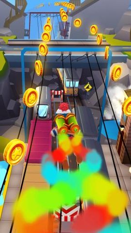2、而在滑板状态下,等于给角色买了保险,滑板会在撞到障碍物时消失,但游戏可以继续进行。