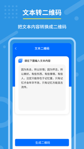 隐私二维码生成器APP的多样化二维码生成功能也是其亮点之一。用户只需动动手指,就能快速生成各种格式的二维码,包括文本、名片、录音、图片、情书、视频、邮件、短信、文件和网址等,满足用户在不同场景下的需求。这使得软件成为一个功能全面、操作简便的二维码制作与分享工具。