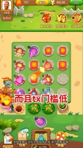 2、在暴打僵尸红包版中,玩家需要不断完成合成,提升炮台等级,才能更快地击败僵尸并获得更多的福利。