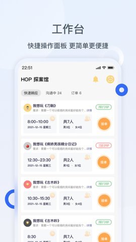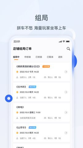 1、波吉商家平台还能接收波吉用户的组局下单或打本订单,让商家对开局剧本、开局和参局人数等信息一目了然,扫码核销操作也变得快捷方便。