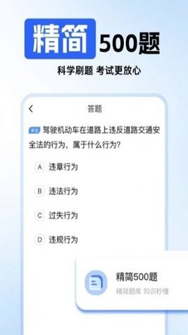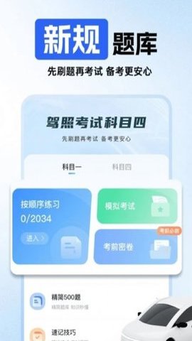 2、驾照考试科目四App是一款方便随时进行驾考学习的手机软件,包含精简的500道题目,让考生可以随时享受科学刷题的乐趣。