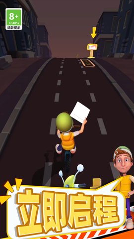 2、玩家需要灵活运用手指在屏幕上滑动,控制送货员的移动方向和速度,以最快的速度穿过繁忙的城市街道。