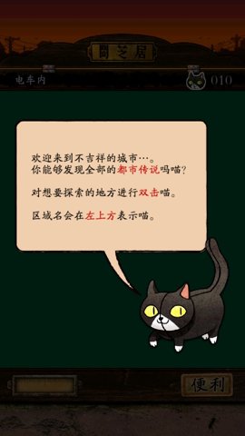 1、游戏中,玩家需要搜集半猫来不断获得传说值,达到一定峰值之后就有可能遇到都市传说。