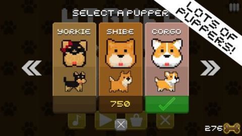 1、扮演一只可爱的小狗,在像素世界中飞跃,挑战各种关卡,面对各种障碍,灵活应对,成功规避并享受美味的骨头奖励。