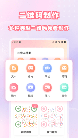 在二维码扫描与生成软件中,【扫描生成】是其核心功能之一。用户可以利用该功能将各种资源转换成二维码,一键制作文本、网址、图片、视频、语音、名片、WIFI等格式的二维码。用户可以根据自己的需求和喜好,制作出专属个性化的彩色二维码,为自己的产品、服务或个人品牌增添独特的标识。