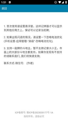 2、记牌器目前支持一副牌的斗地主,暂时不支持记录大小王,但如果玩家发现有不支持的游戏版本,可以随时开发团队,他们会尽快提供支持。