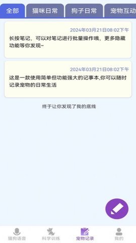1、总体来说,啵啵猫狗语音是一款专业的宠物翻译工具,为宠物主人提供了便捷的方式与自己的宠物进行交流和沟通。