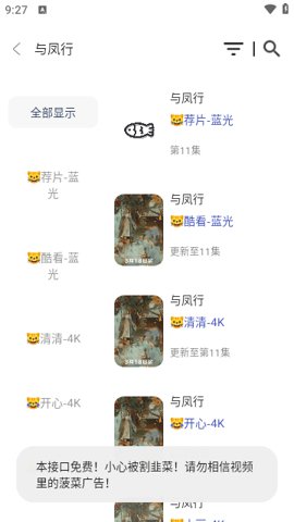小鱼干4K是一款专注于影视娱乐的应用软件,拥有海量高清影视剧资源,并且保持及时更新,让用户第一享受到最新的好剧。用户在使用小鱼干4K时,可以体验到一个无收费、无广告的观影环境,让用户可以专心欣赏影视作品,不受干扰,享受纯净的观影体验。 小鱼干4K具有强大的解析能力,能够实现极速缓冲,让所有影片都能即点即播,无需等待,让用户可以流畅观看影视内容。