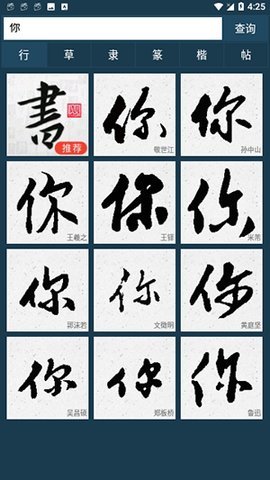 3、这款应用汇聚了海量的书法学习资料,包括行、草、隶、楷等多种书法字体,以及历代著名碑帖拓本和经典书法理论及教程。