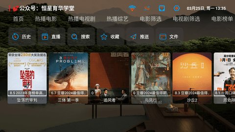 4、首页精选当前最受欢迎、观看人数众多的电影和电视剧,为您推荐佳作。