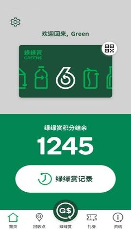 1、绑定绿绿赏会员卡可以记录会员在回收环保站、回收便利点及回收流动点提交回收物所获得的积分。