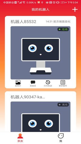 1、长颈猫机器人的app需要配合陪护机器人硬件设备使用,为用户带来更好的远程陪伴家人体验。
