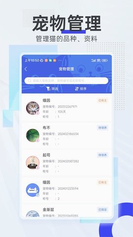 领猫管家手机版是一款专注于宠物领养门店管理的APP,为宠物家庭提供了便捷的宠物档案查看和编辑功能。用户可以通过该应用轻松建立并管理宠物的信息档案,详细记录宠物的成本、疫苗接种情况、来源等重要信息,实现对宠物信息的全面管理。 在领猫管家APP中,店内宠物管理方面,用户可以规范分区管理店内的猫柜,确保宠物的生活环境整洁有序。