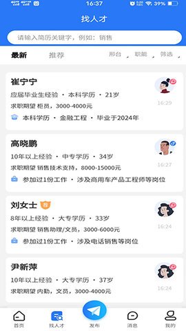 1、邢台快聘利用先进的算法,实现智能匹配,根据求职者的个人经历和企业的招聘需求进行精准匹配,提高招聘效率。