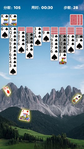 2、蜘蛛纸牌新版接龙是一款休闲单人扑克牌接龙游戏,风靡全球。