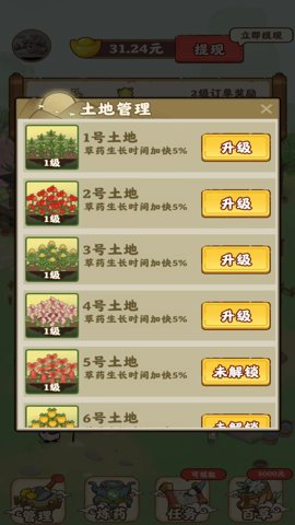 3、在九州神草园中,玩家需要耐心地经营和管理自己的土地,才能赚取更多的金钱。