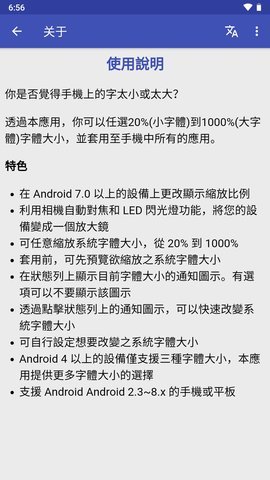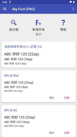 3、BigFont手机版App让安卓手机用户可以轻松调整手机系统中的字体大小,使屏幕上的文字内容更大更清晰,便于阅读和使用。