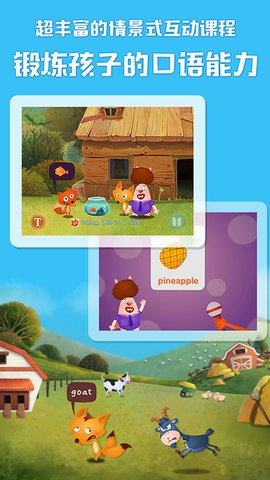 2、该软件由成都奔狐信息技术有限开发,通过交互式学习方式鼓励孩子们在与其他角色对话的过程中提升语言表达能力。