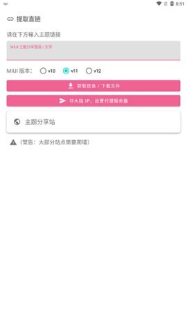 1、用户也可以通过点击“提取直链”,输入主题链接,获取信息并下载文件,然后通过上述方法进行主题设置。