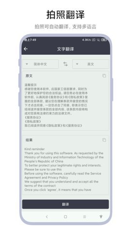 3、该App支持扫描文档并自动校正、离线识别、扫描图片并提取文字、扫描文字并自动翻译、拍照识别商品信息等功能。