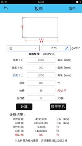 2、在计算型材重量时,用户只需输入型材的规格、材质密度等信息,即可快速得出准确的重量数据,这对于成本估算、物流运输等方面非常重要。