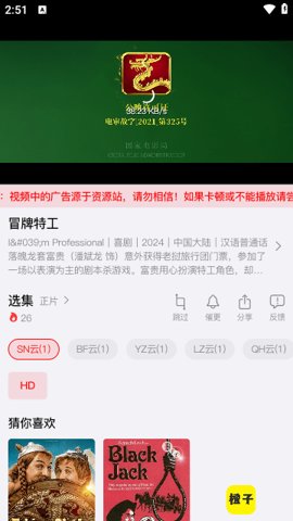 3、橙子视频纯净版的功能也非常全面,支持切换播放源、倍速播放、投屏播放等操作,让用户可以根据自己的需求来调整观影体验。