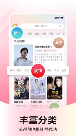 2、等鱼短剧APP汇聚了全网热门的高清短剧资源,涵盖了各种题材,包括战神、神医、重生、都市等。