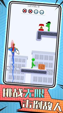 3、通过巧妙地操控火柴人和灵活运用道具,玩家可以更快地通过关卡,挑战更高的难度,享受游戏带来的成就感和乐趣。