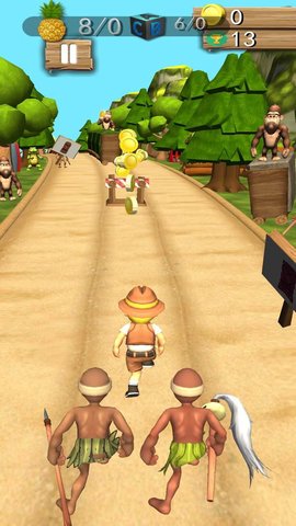 2、玩家需要不断奔跑,不要被野人抓到。