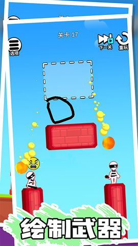 绘画火柴人是一款让人着迷的益智游戏,游戏的画面场景明亮简洁,让玩家在轻松的氛围中享受游戏乐趣。操作简单易上手,只需画出武器,利用武器掉落或触发道具机关砸倒火柴人,让人感到充满挑战和乐趣。如果你对这款游戏感兴趣,不妨试试看。