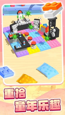 2、开心派对的灵感来源于现实生活中的积木游戏,玩家在游戏中只需根据说明进行操作,从开箱到撕包,从拼接到搭建。