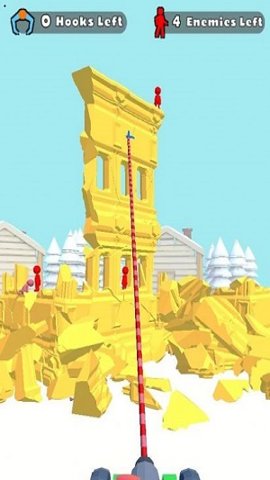 3、采用钩子武器,玩家可以使用钩子武器将建筑拆除和敌人拉回来摔死,有多个关卡,玩家不断挑战,完成不同难度的任务,不断成长!游戏的画面采用了3D渲染技术,精美细致,让玩家可以感受到更加逼真的独特环境。