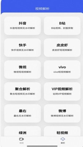 1、超强视频解析App专门针对视频处理和解析而设计,用户可以通过它解析来自各大视频网站的视频链接,支持一键下载功能,让用户可以将自己喜欢的在线视频保存到本地进行观看。
