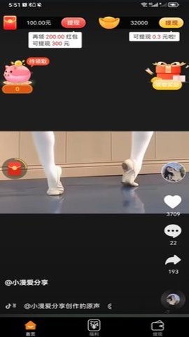 1、滴答刷短视频还提供了后台红包实时提取的功能,操作简单便捷,让用户可以轻松获得红包奖励。