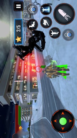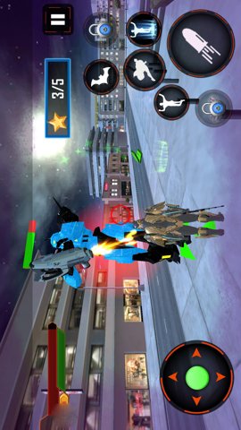 2、除了在空中飞行外,游戏还提供汽车变形追逐行动,让玩家在飞行机器人自行车游戏变形战争中尽情享受刺激的战斗。