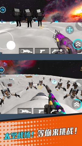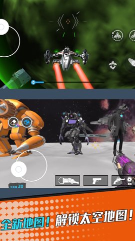 2、太空大战是一款快节奏的现代FPS射击游戏,类似于甜瓜游乐场的流行物理模拟沙盒游戏。