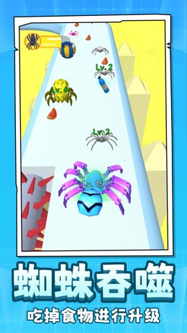 1、玩家需要在快节奏的奔跑中展现出反应力和技巧,同时在与其他蜘蛛的乱斗中不断提升自己的实力。
