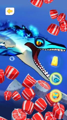 2、随着吃掉的食物越来越多,小鱼的体型也会不断增大,最终进化成海洋霸主。