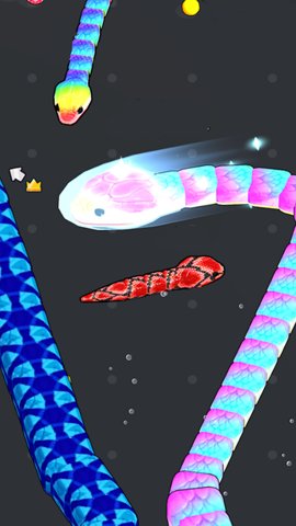 3、在充满蛇蛇的战场上穿行,玩家需要策略性地操纵自己的蛇,智取对手,逐渐成长为一股不可阻挡的力量。