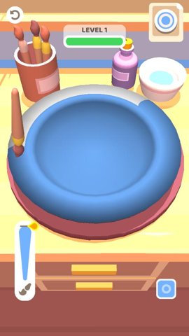 1、玩家需要规划描绘出自己想要的盘子大小尺寸,然后手指转动胚子,不断增加高度,一点一点地制作出自己的盘子。