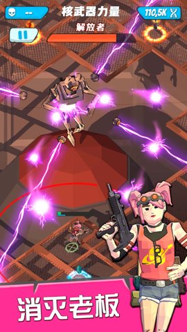 2、在每场战斗结束后,玩家可以收集所有战利品来升级英雄和他的枪械,赢得这场无尽的战争。